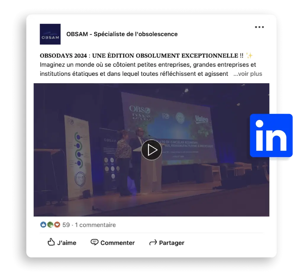 En 2024, OBSAM a co-organisé avec l’Institut Français de l’Obsolescence un événement exceptionnel « les OBSODAYS » destiné à faire se rencontrer donneurs d’ordres et entreprises.